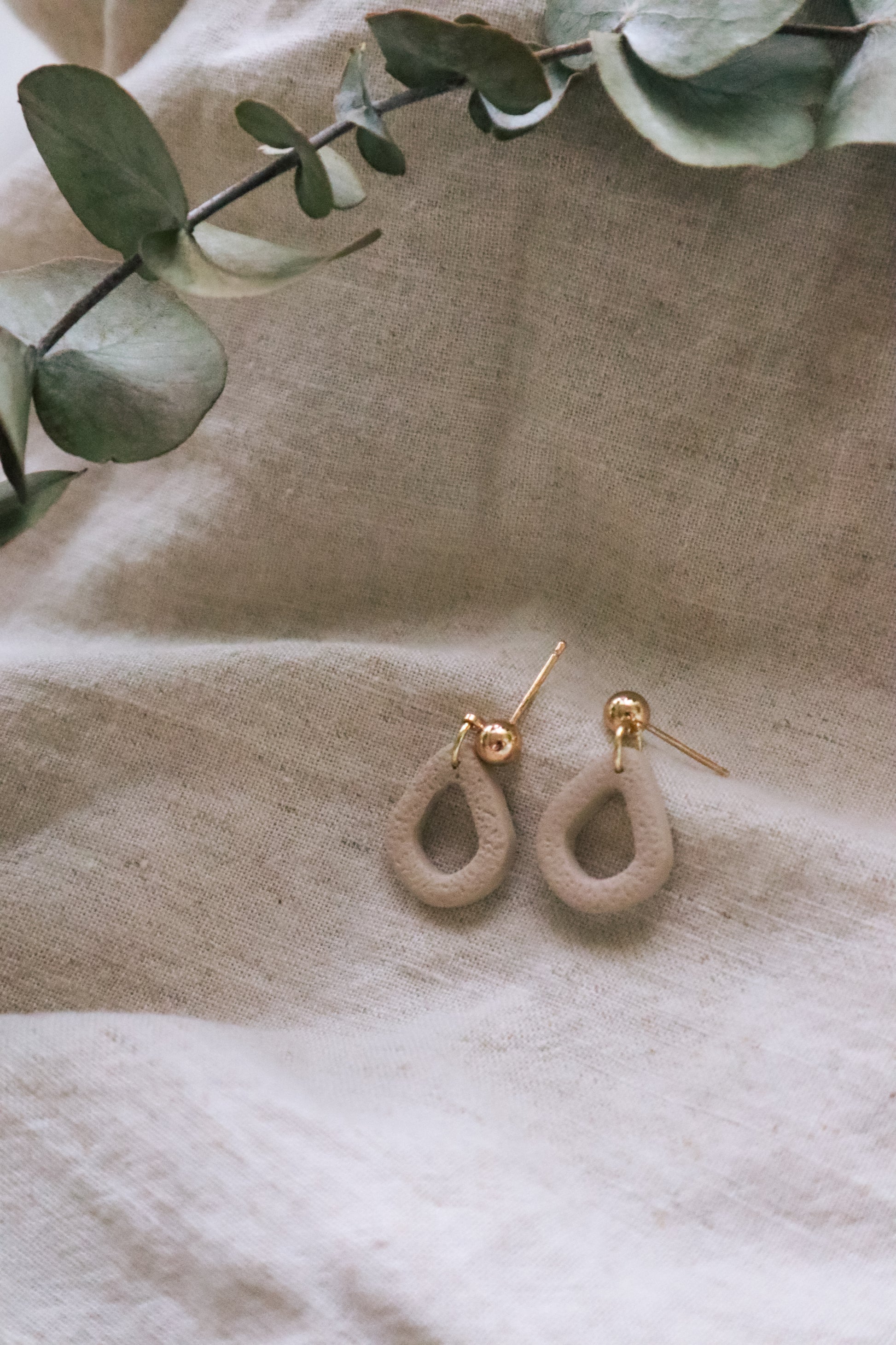 Textured Hollow Tear Drop Shaped Clay with 5mm Round Gold Plated Stud