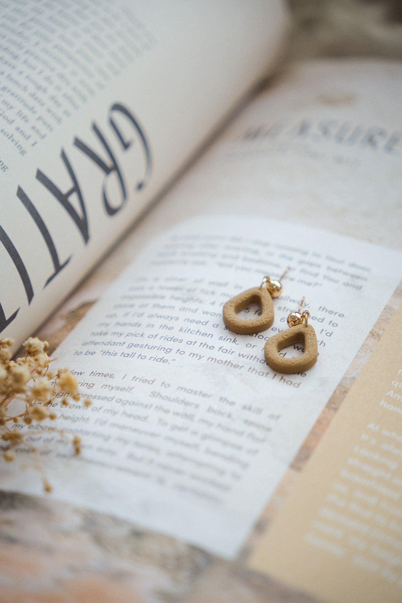 Textured Hollow Tear Drop Shaped Clay with 5mm Round Gold Plated Stud