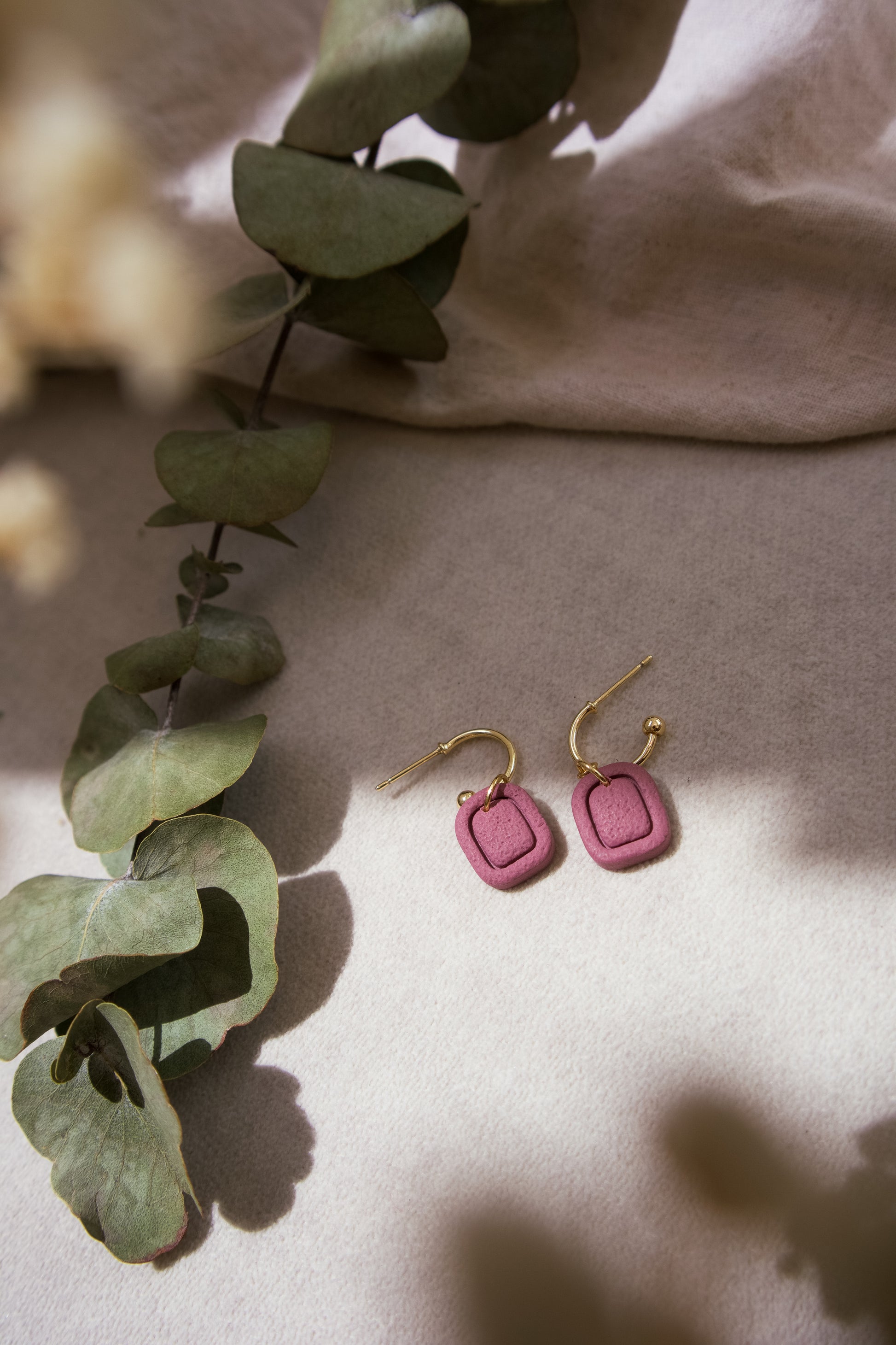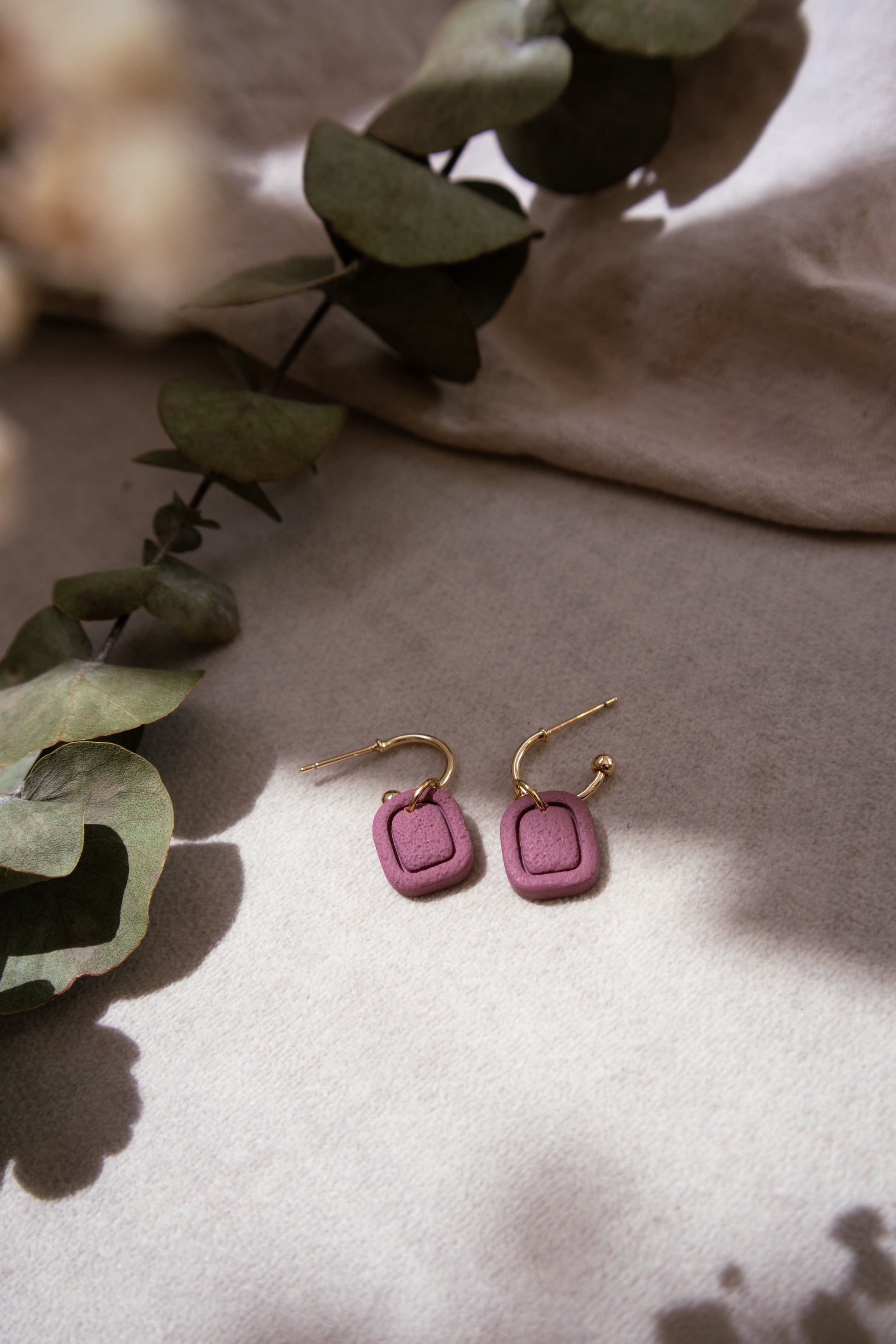 Textured Rectangular polymer clay with 24K Gold-Plated Circle Hoop