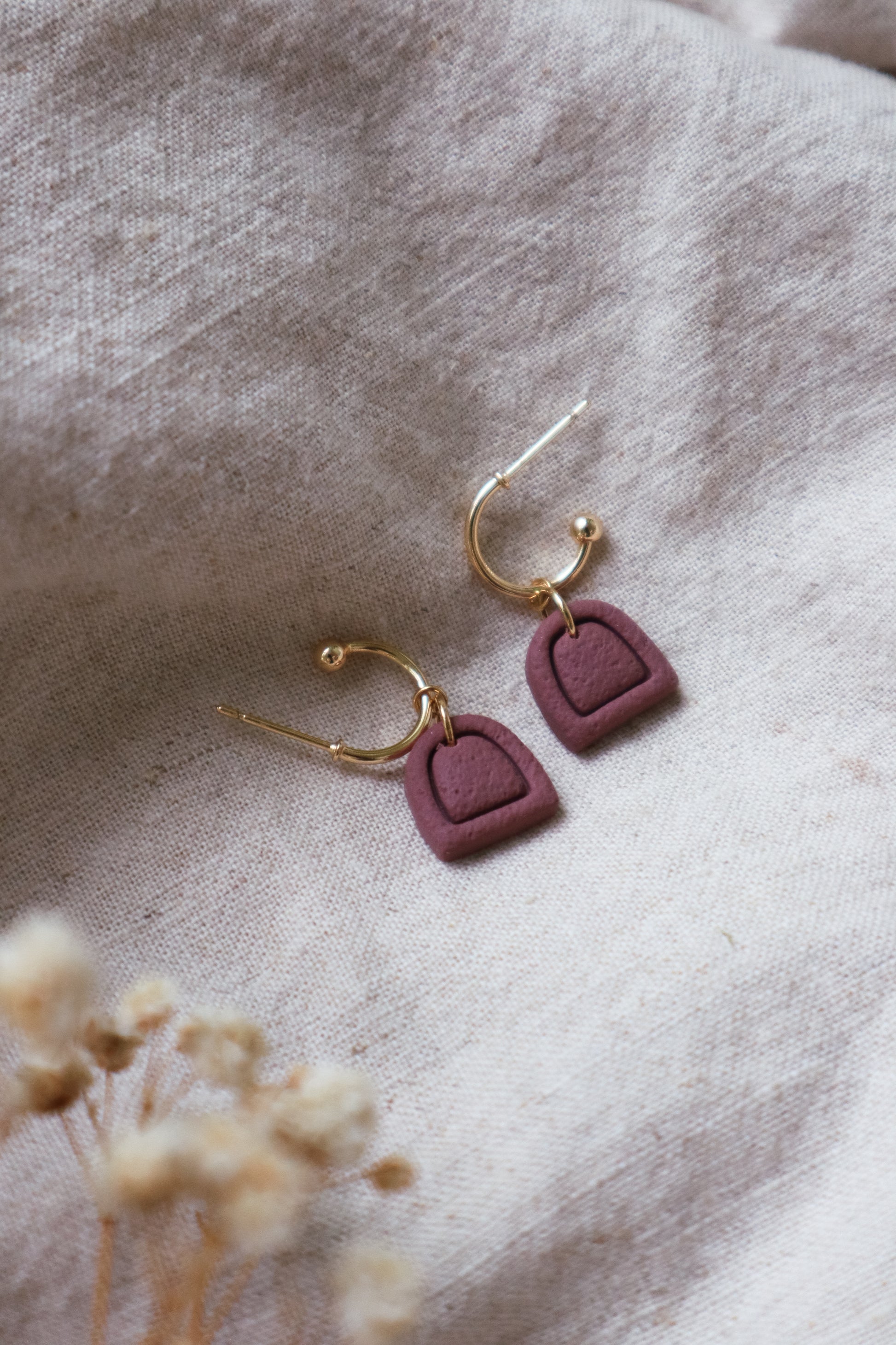 Textured Mini-Arch clay with 24K Gold-Plated Circle Hoop