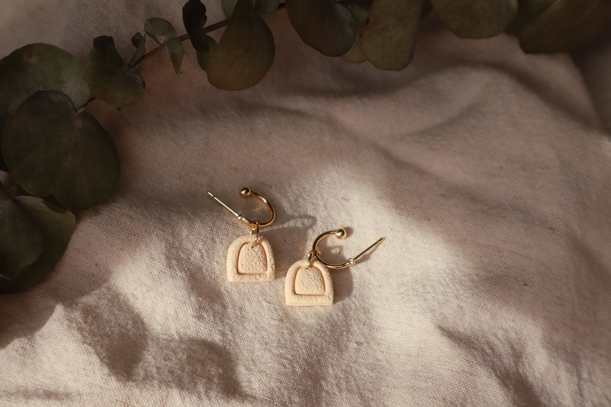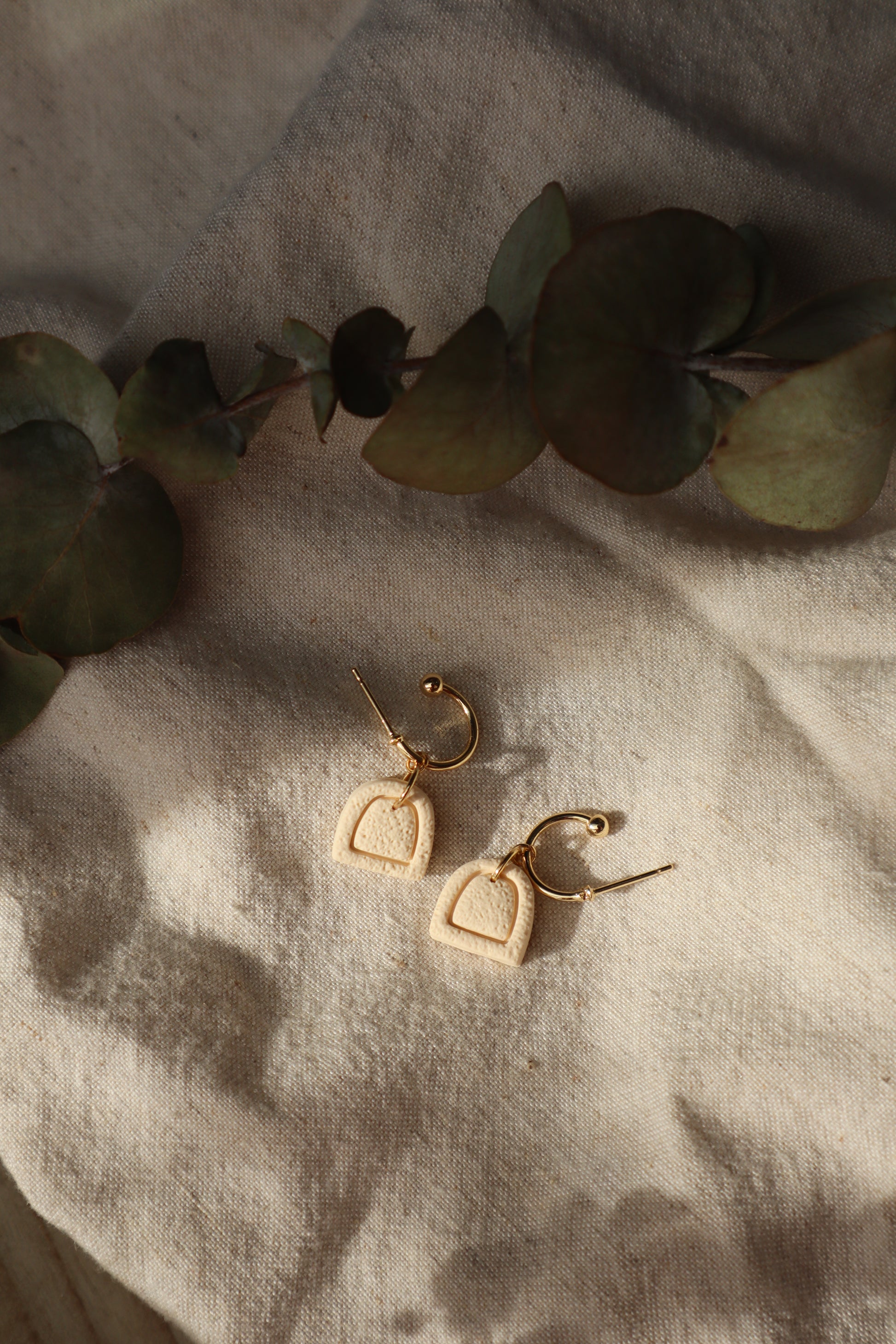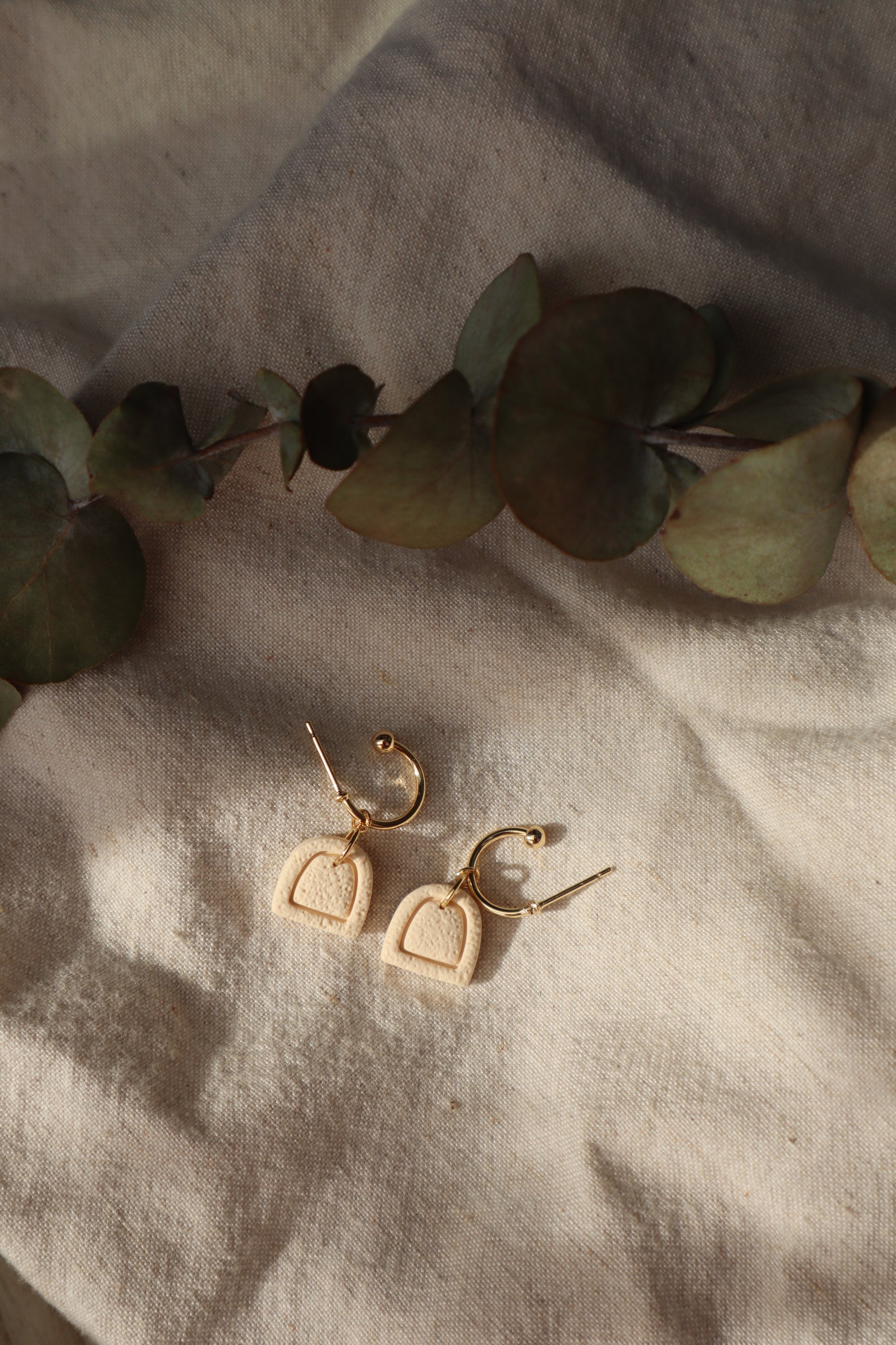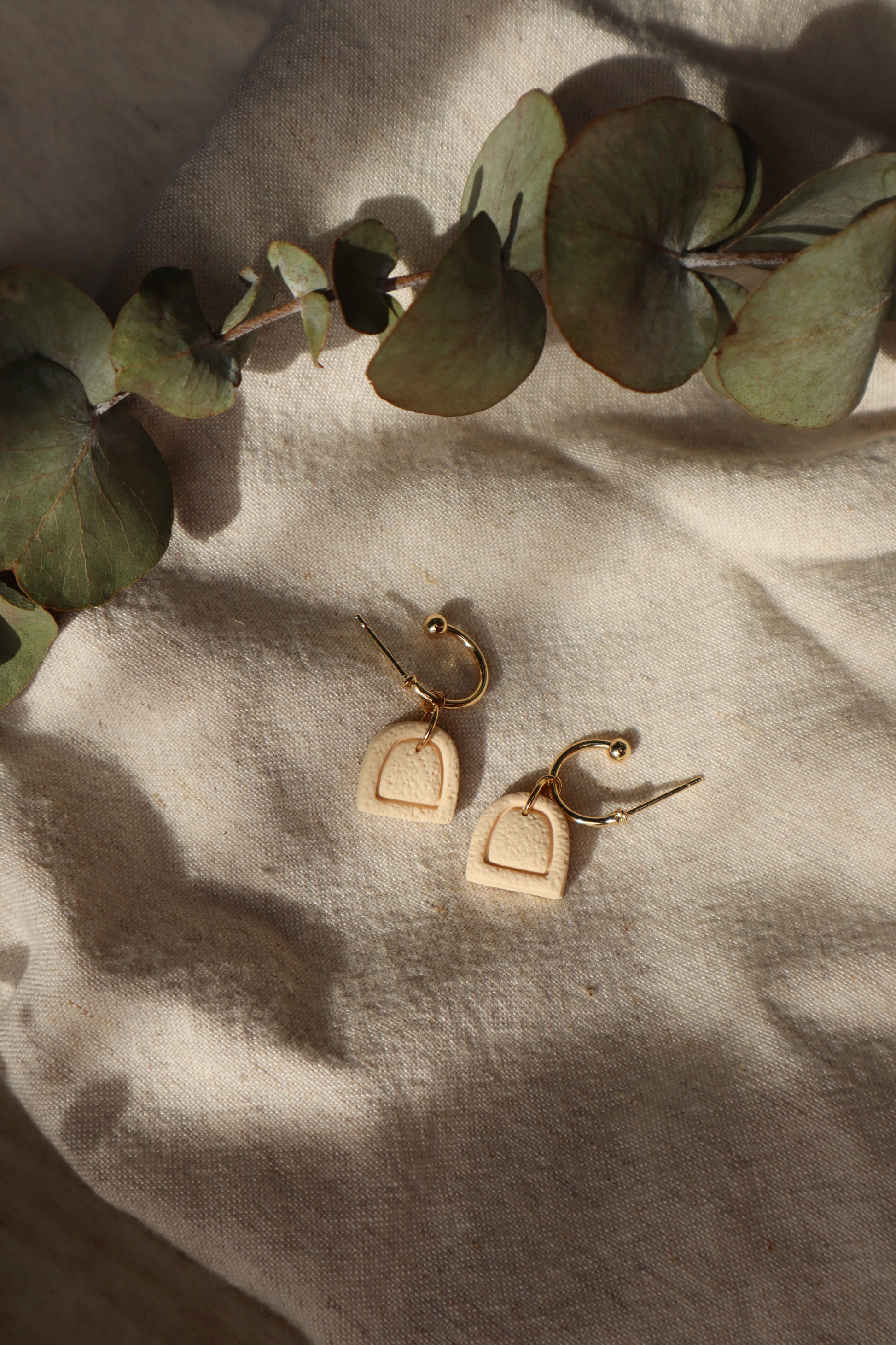 Light Yellow Textured Mini-Arch clay with 24K Gold-Plated Circle Hoop