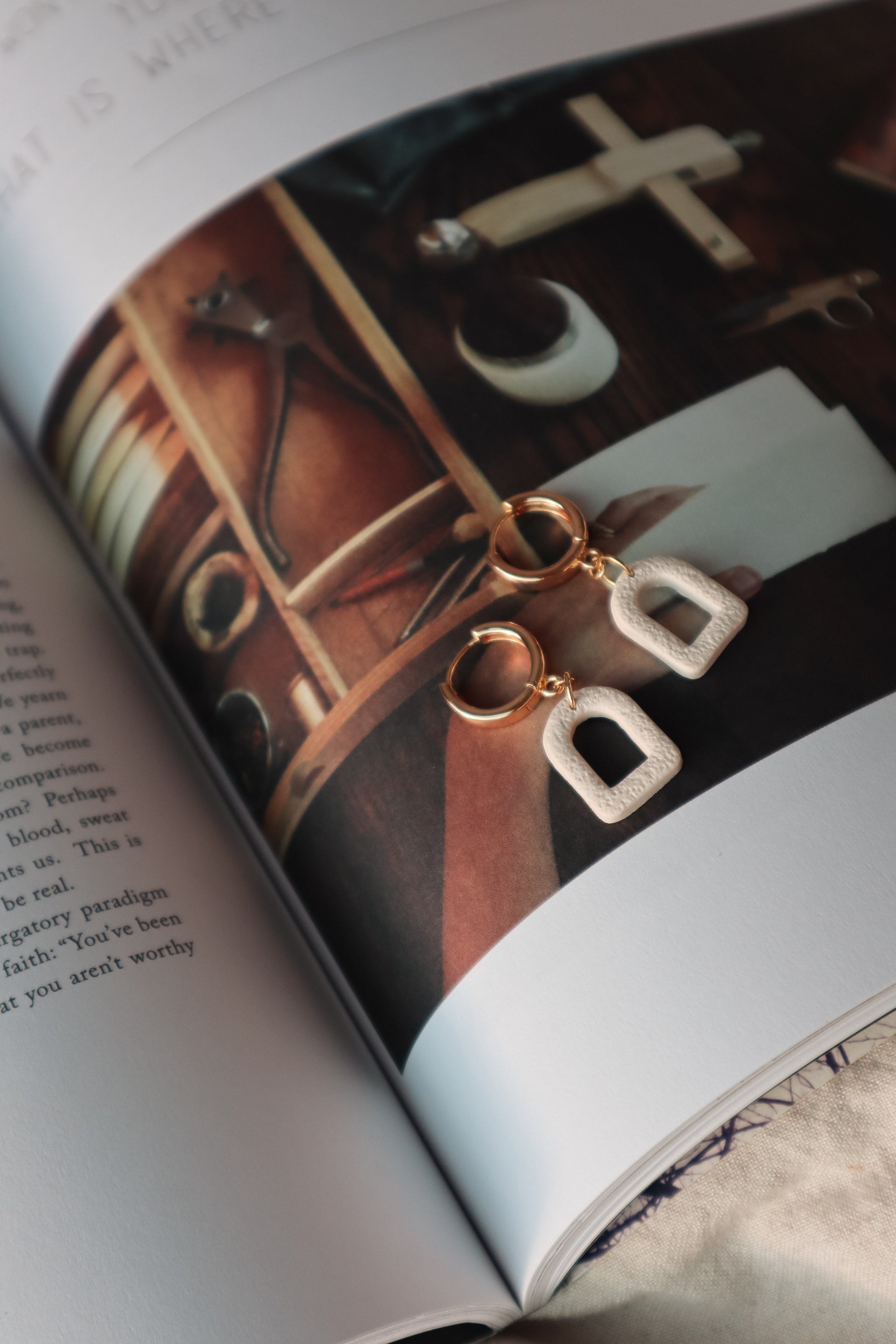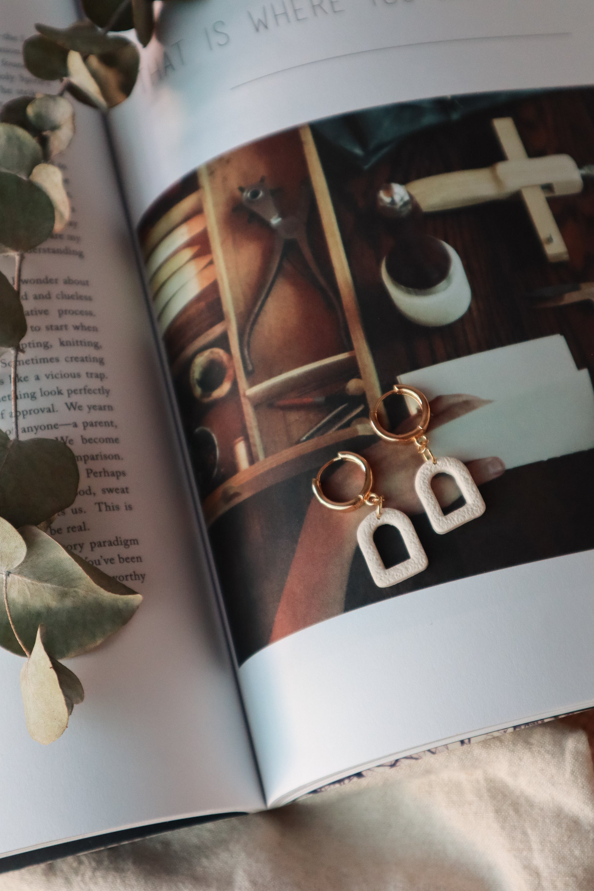 Textured Hollow Arch Shaped Clay with 24K Gold Huggies